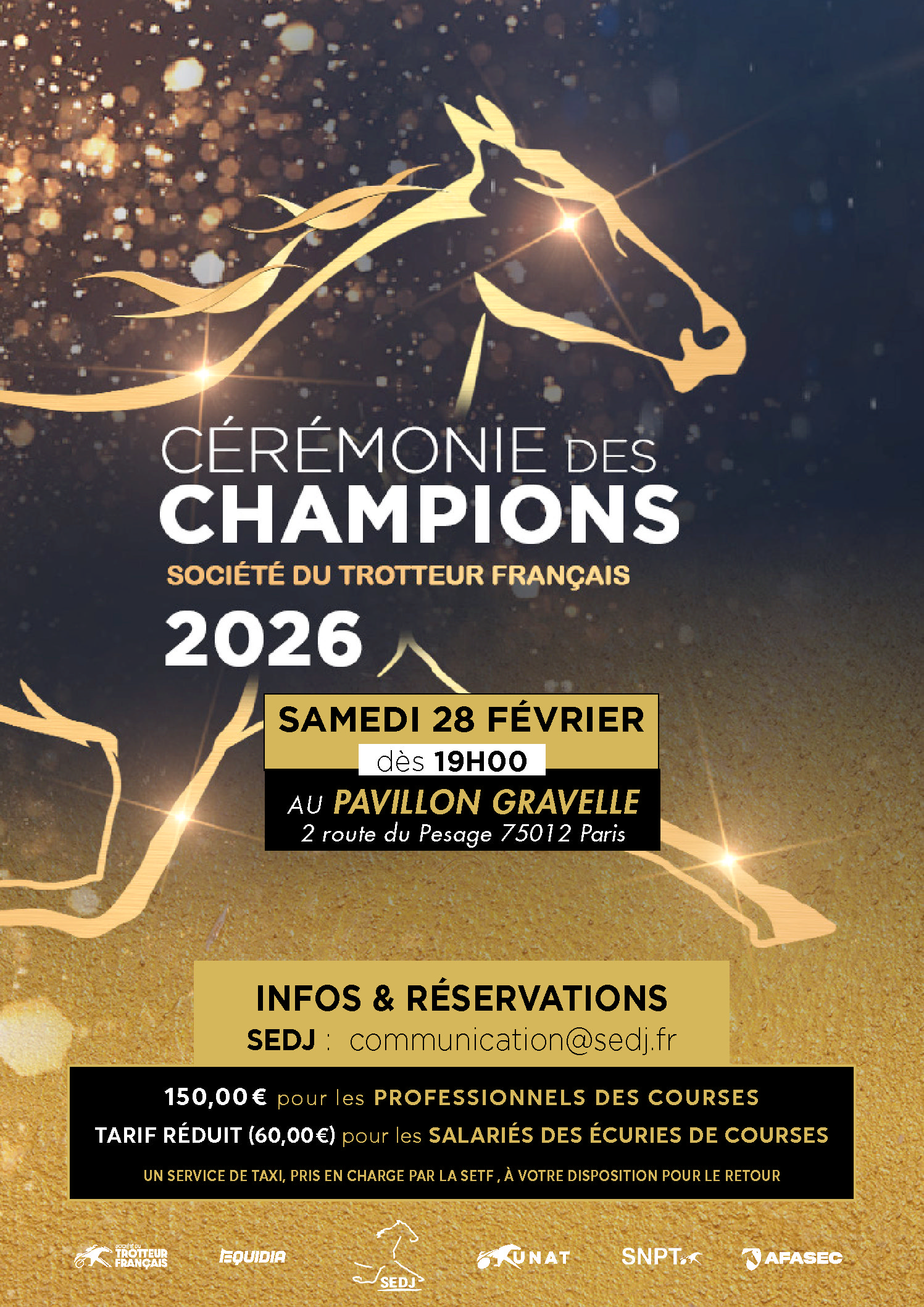 Les champions du Trot de 2025 et du Meeting d’Hiver 25-26 seront honorés lors de la grande soirée de l’année :